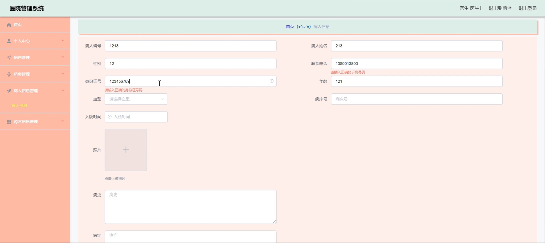 - 医生功能:个人中心、病床管理、药房管理、病人信息管理、药方信息管理等。