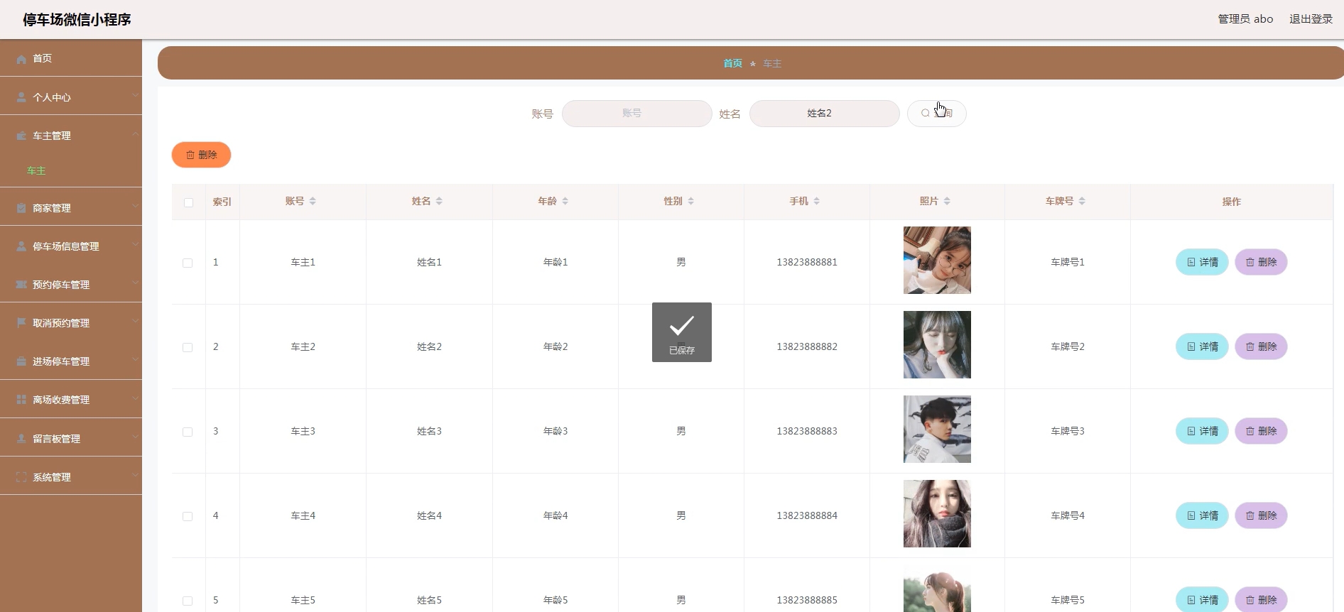 - 车主管理:管理注册车主的信息。