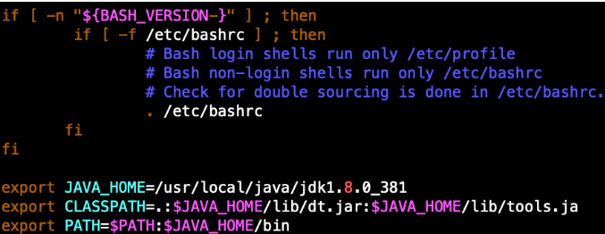 Shift + G 跳到文件的最后一行。export JAVA_HOME=/usr/local/jdk1.8.0_381