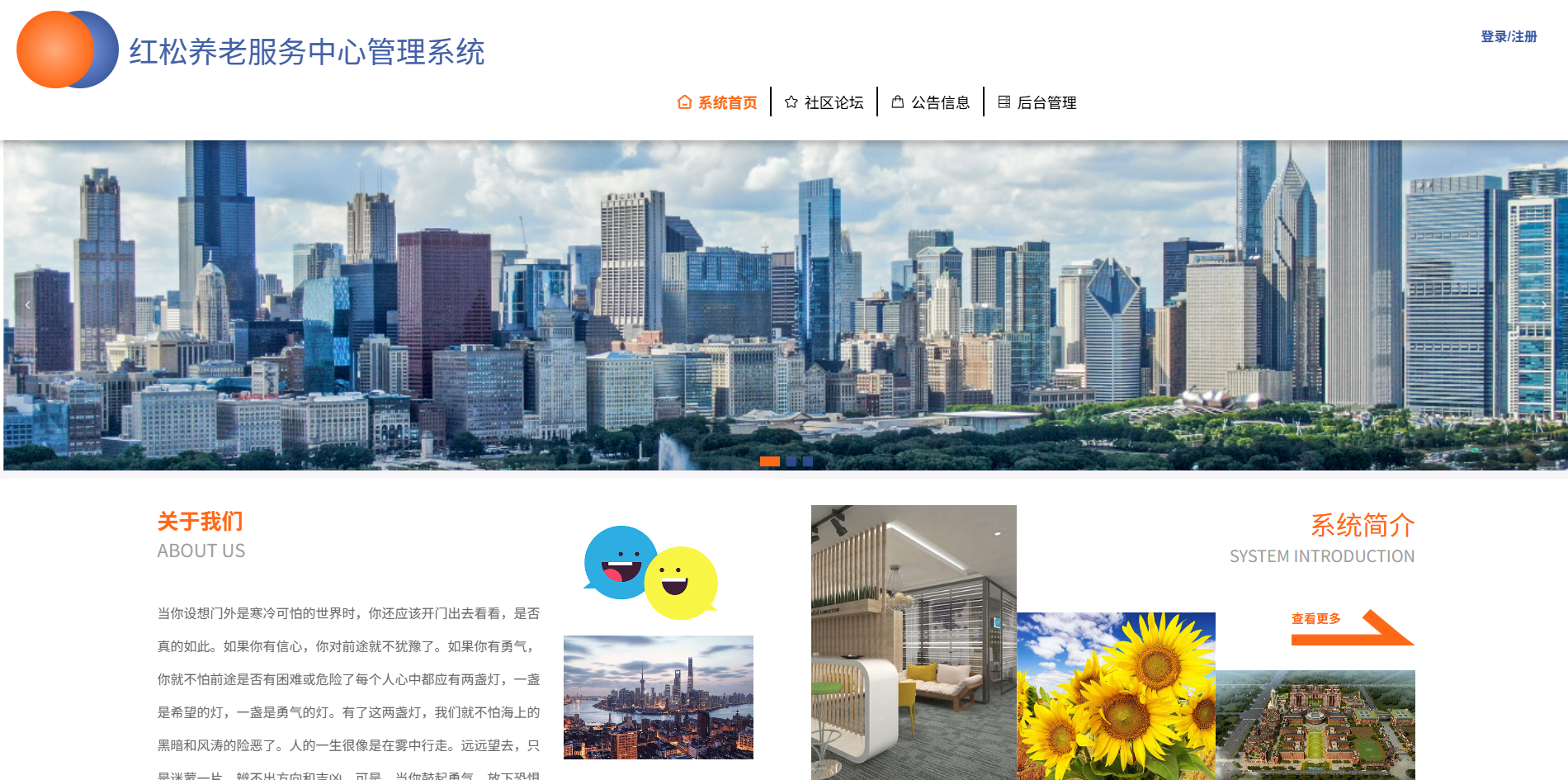本系统旨在利用现代化Web技术,打造一个操作便捷、响应迅速、易于维护的养老服务中心管理平台。后端采用Spring Boot框架,前端基于Vue构建,数据库使用MySQL,整体架构轻量、稳定且具备良好的扩展性,能够满足中小型养老机构的日常运营需求。